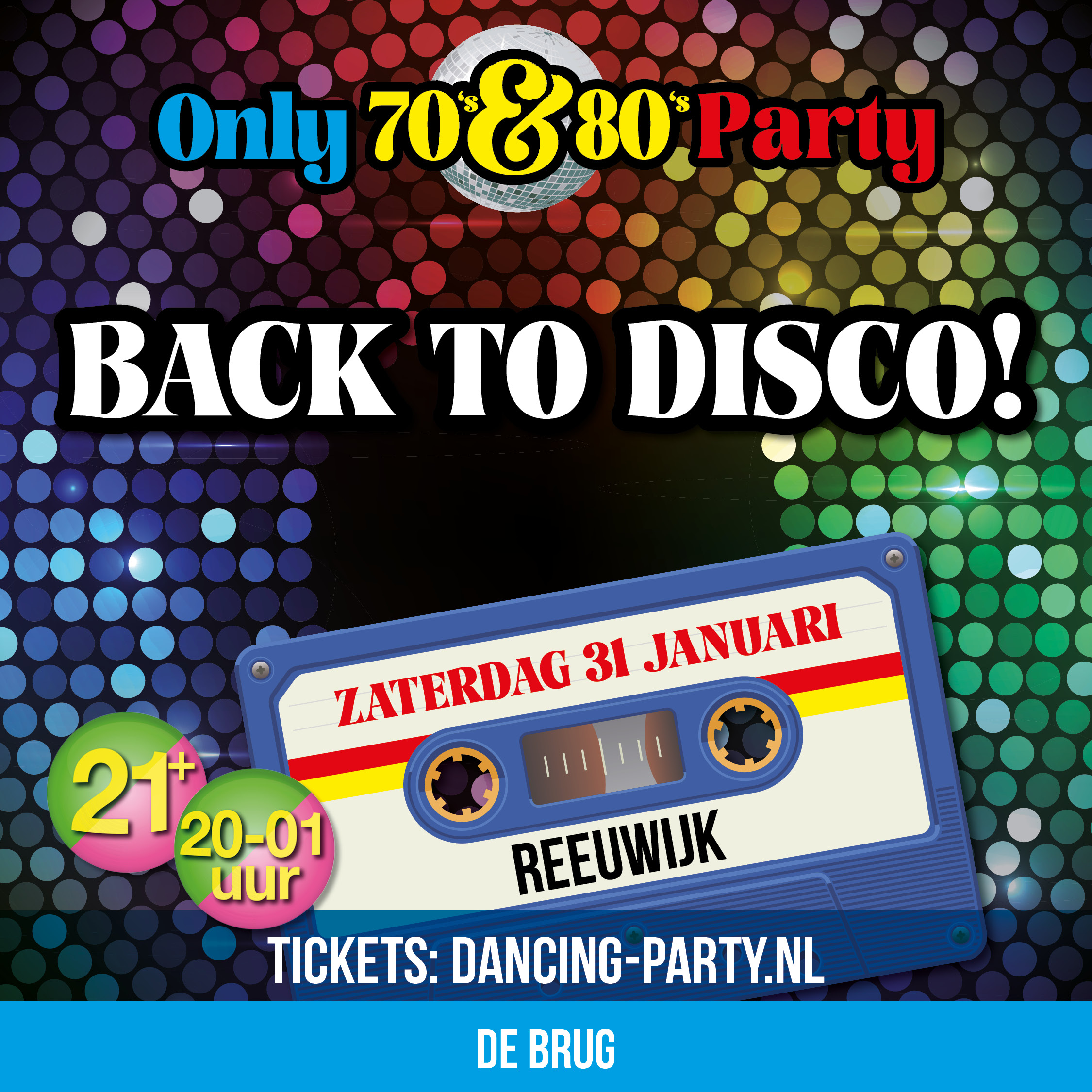 Only 70’s & 80’s Party vindt plaats in De Brug in Reeuwijk.