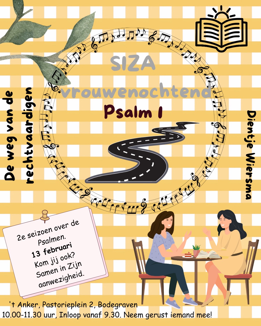 Vrijdag 13 februari ben je weer van harte welkom bij de SIZA vrouwenochtend. We zullen dan stilstaan bij Psalm 1. (Onze) Dientje zal met ons door deze psalm heen leiden. Zoals we gewend zijn bij Dientje zal het weer een mooie ochtend worden.